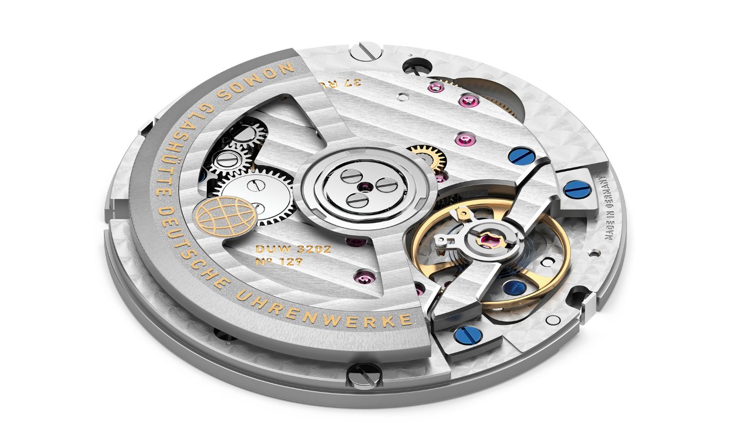 Das DUW 3202 ist mit dem NOMOS-Swing-System ausgestattet und verfügt über einen beidseitig aufziehenden, neu gestalteten Rotor, der sofort am goldenen Globus erkennbar ist. Es ist ein herausragendes Beispiel für die hohe Uhrmacherkunst Made in Glashütte.
