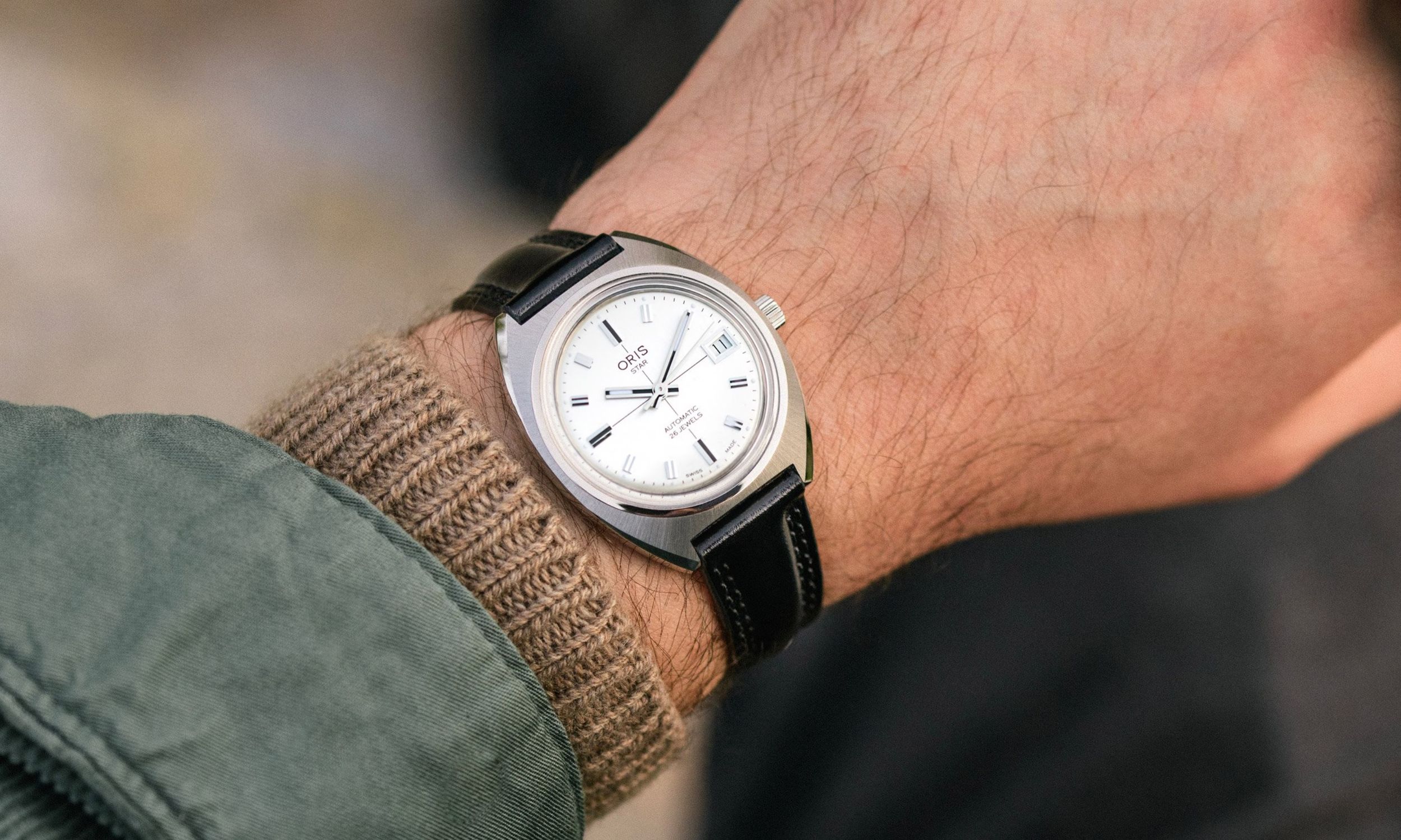 Ein bewusst asymmetrisch platziertes Datumsfenster bei 3 Uhr sowie die nostalgische Verwendung von Plexiglas als Deckmaterial setzen gezielte Vintage-Akzente. Die dezenten Schriftzüge „Star“, „Automatic“ und „26 Jewels“ verweisen stolz auf die mechanische Tradition, die mit dem Fall des Uhrenstatuts erst vollends ermöglicht wurde.