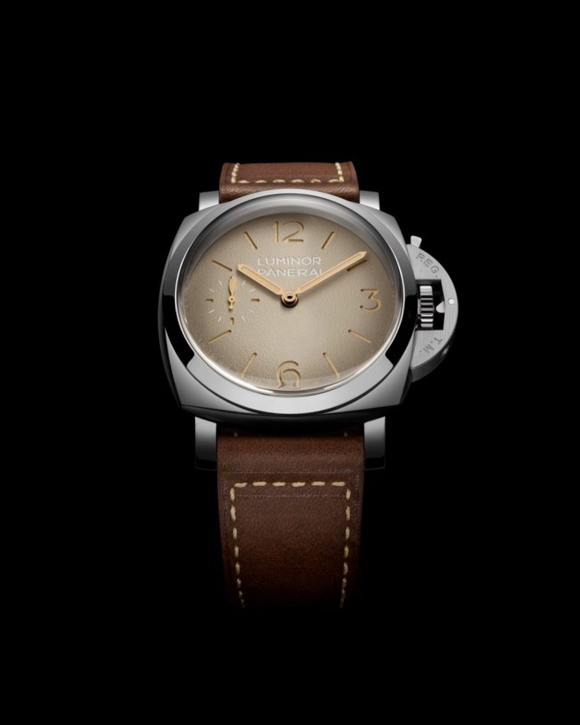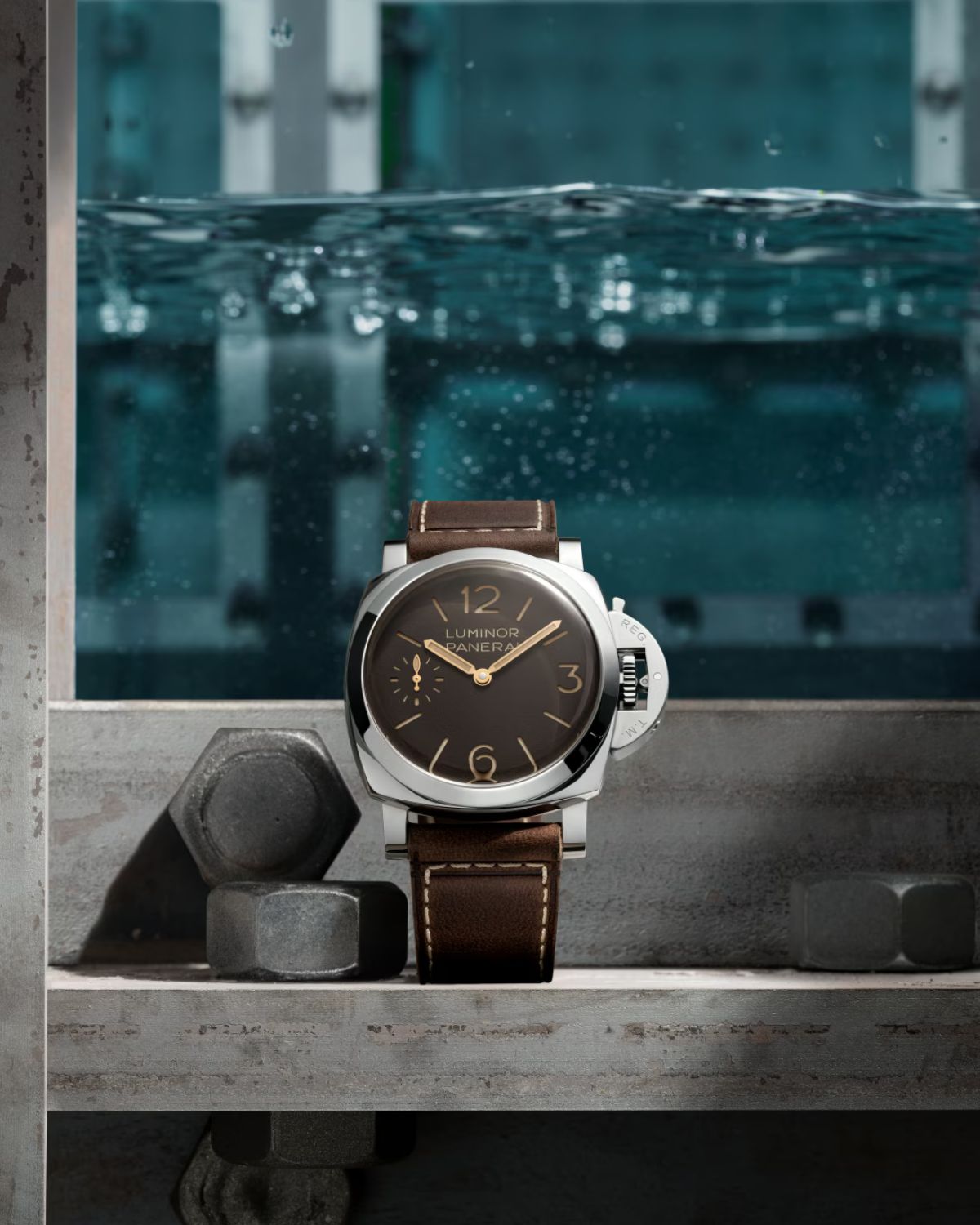 Die Luminor Destro PAM01732 ist eines der aufregendsten Modelle der Messe. „Destro“ (italienisch für rechts) bezeichnet Uhren, bei denen die Kronenschutzbrücke auf der linken Seite des Gehäuses angebracht ist. Ursprünglich wurde dieses Design für Marinetaucher entwickelt, die ihre Uhr am rechten Handgelenk trugen, um die linke Hand für Kompass oder Tiefenmesser frei zu haben.
