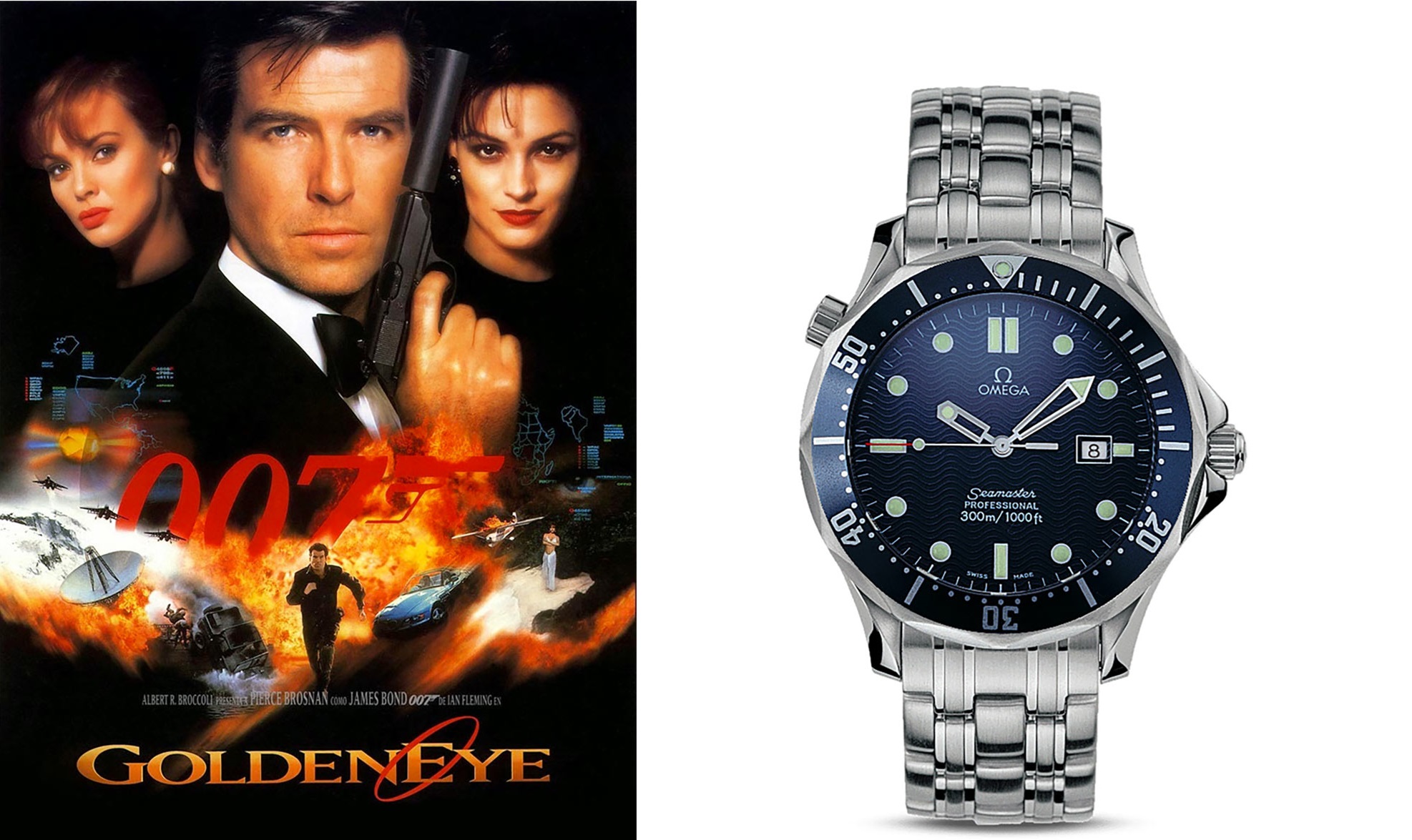 Die OMEGA Seamaster hingegen begann ihre Geschichte 1948 als elegante, leicht sportliche Uhr. Ihre Transformation zur heutigen Diver 300M erfolgte erst 1993 – also viel später als die Submariner –, aber mit beeindruckendem Erfolg. Die charakteristische Wellenstruktur des Zifferblatts, das Heliumventil und die mutige Ästhetik machten sie sofort unverwechselbar. Und dann kam 1995: Der Moment, als Pierce Brosnan in „GoldenEye“ erstmals die OMEGA Seamaster Diver 300M am Handgelenk trug. Dieser Auftritt katapultierte die Uhr hin zu einem globalen Kultstatus. Sie ist seit jeher nicht nur ein technisches Instrument, sondern ein Symbol für Stil, Eleganz und moderne Männlichkeit.