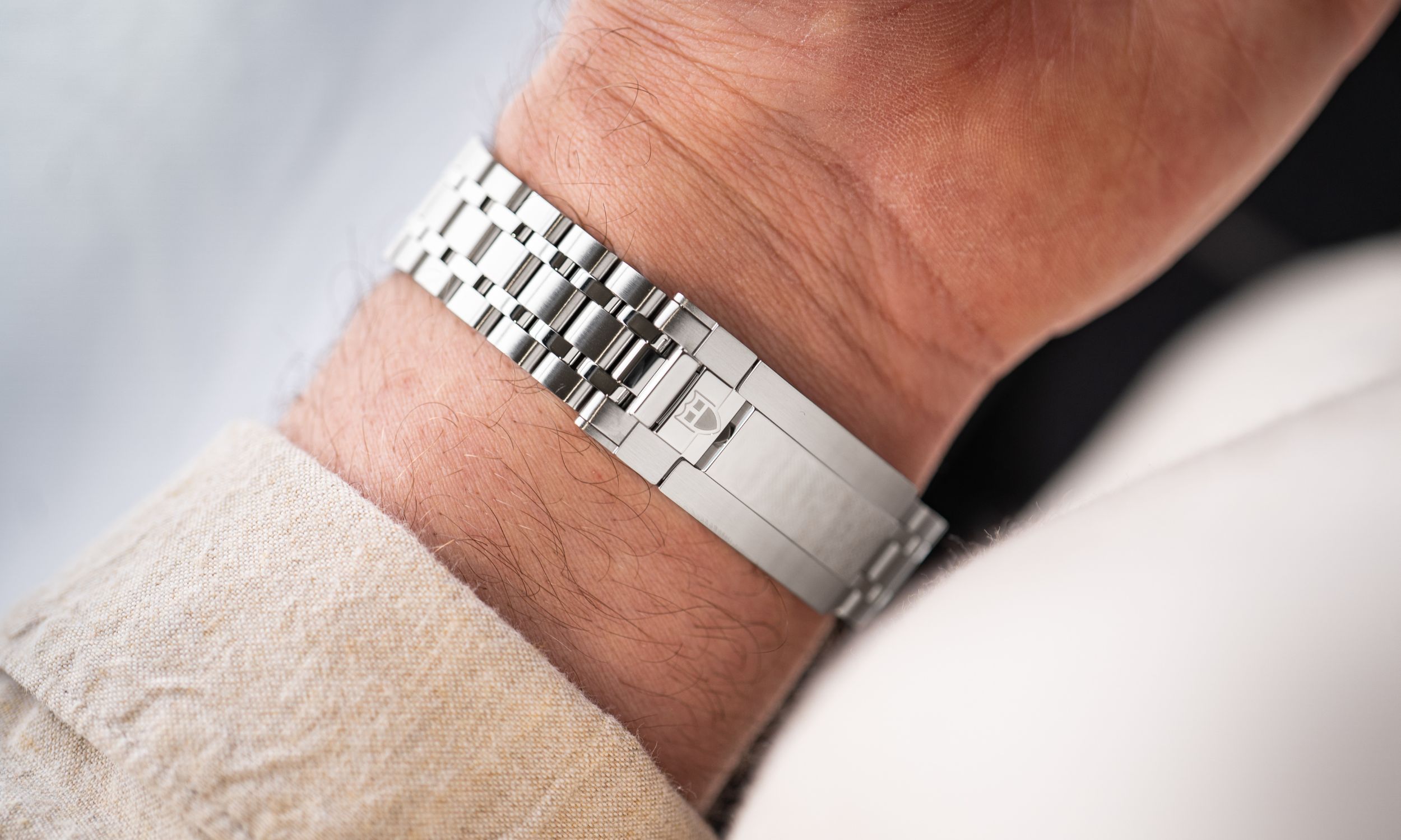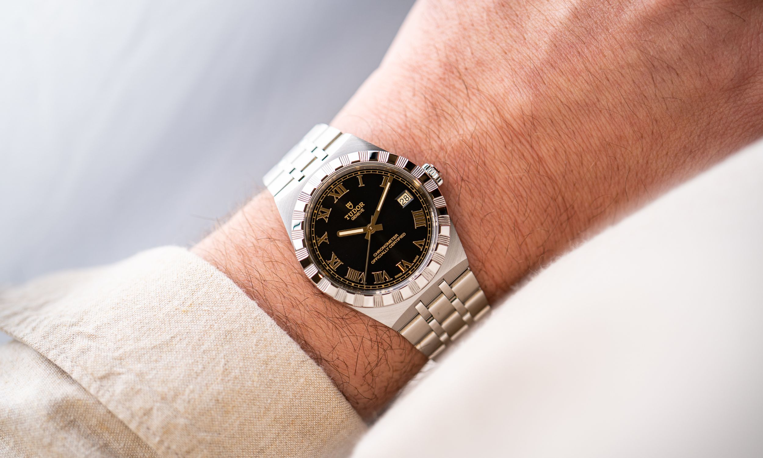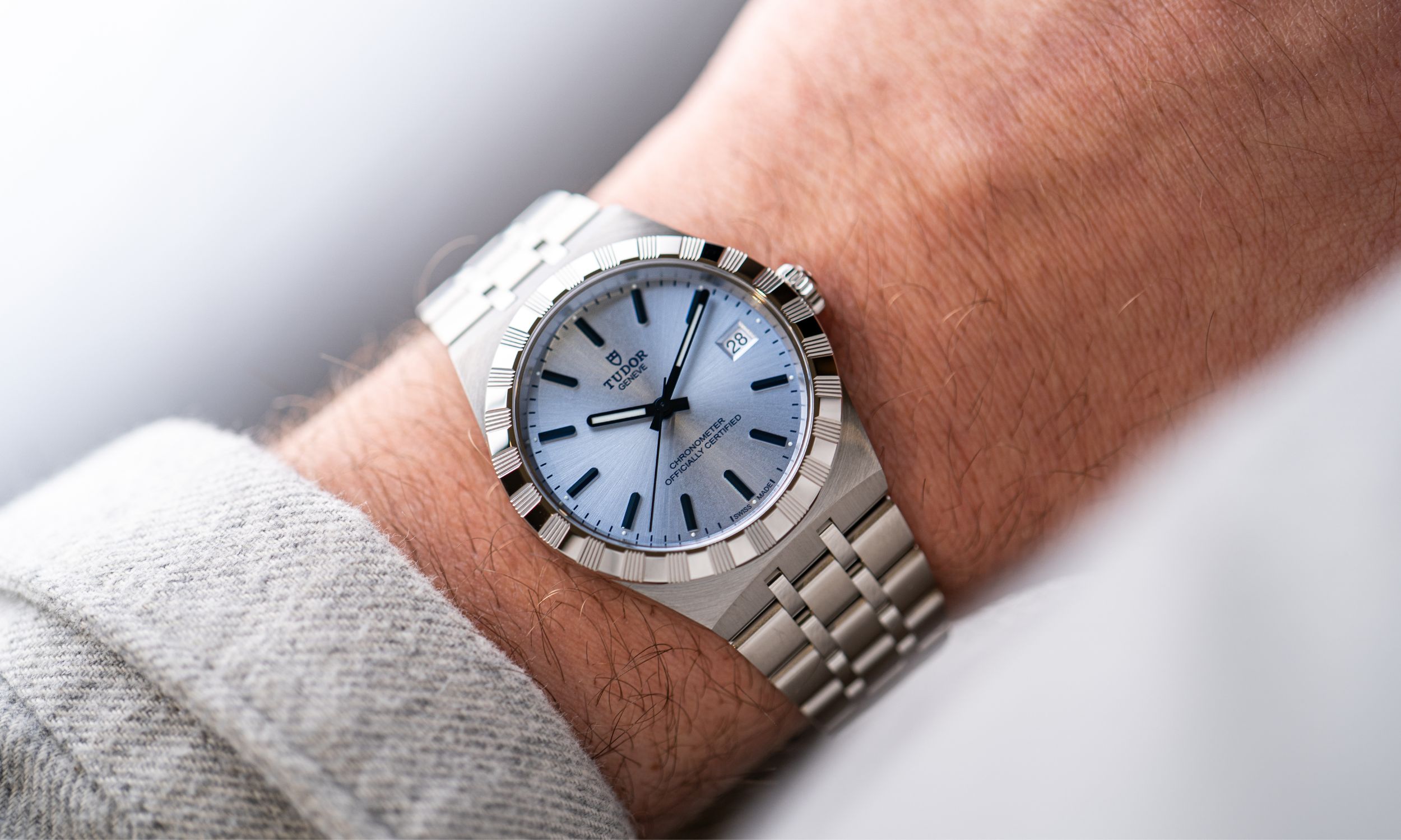 Jedes Gehäuse besteht aus hochwertigem Edelstahl 316L und ist bis zu einer Tiefe von 100 Metern wasserdicht. Die Kombination aus satinierten und polierten Flächen sowie die verschraubbare Aufzugskrone mit dem TUDOR-Logo im Relief machen deutlich, dass hier keine Kompromisse bei der Qualität eingegangen wurden. Ob in reinem Edelstahl oder in der edlen Bicolor-Variante mit Elementen aus Gelbgold – die Royal bleibt ihrem Ruf als vielseitiges Multitalent treu.