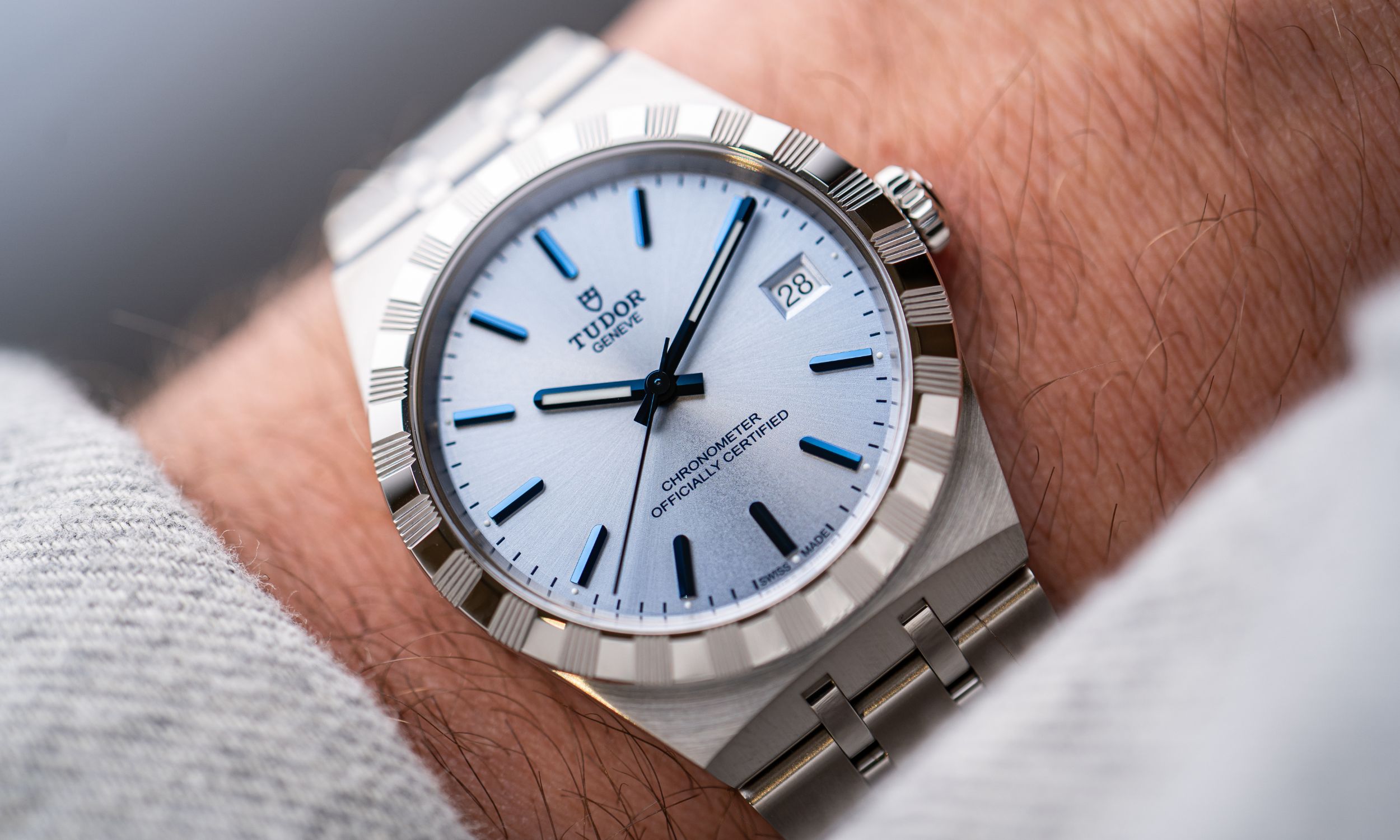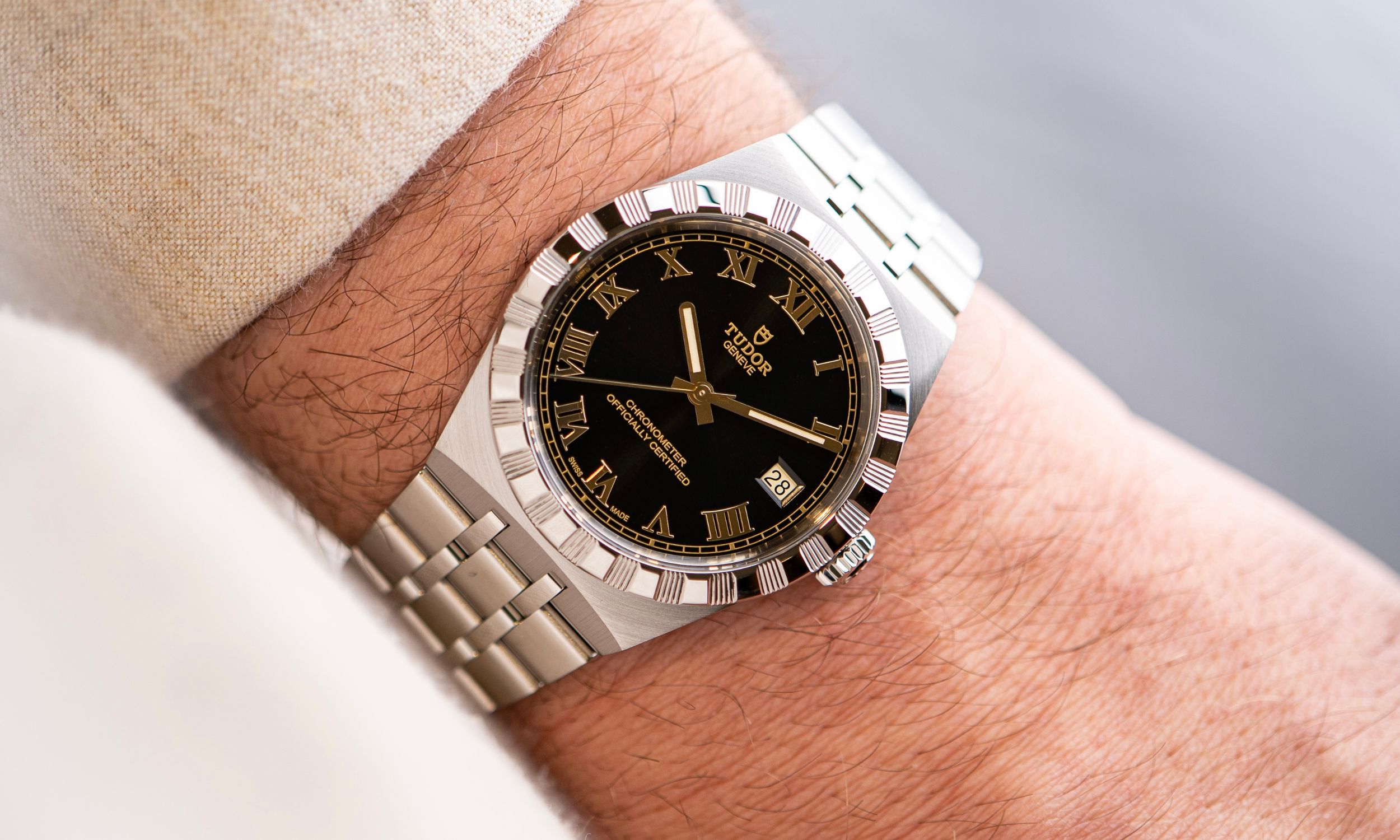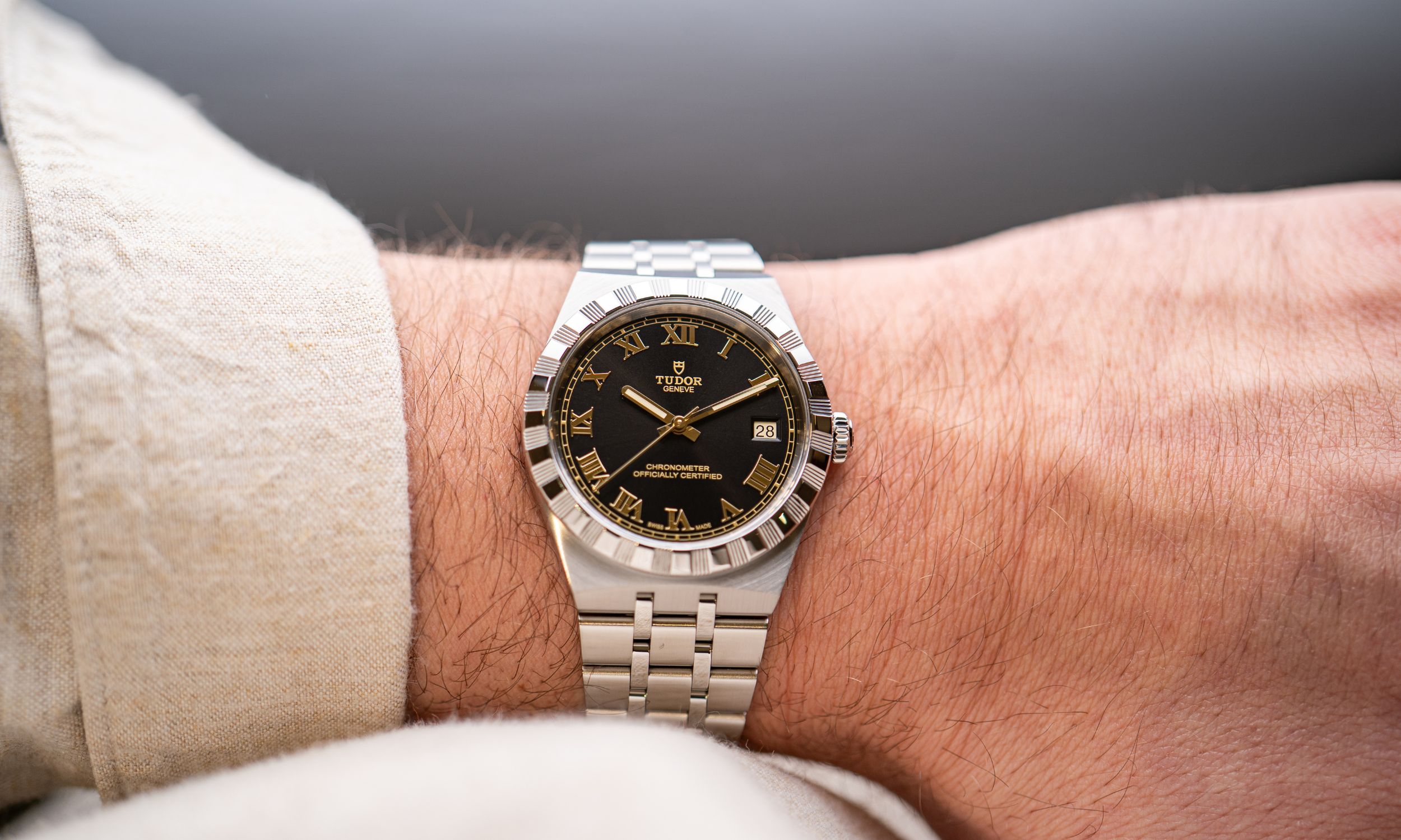 Jedes Gehäuse besteht aus hochwertigem Edelstahl 316L und ist bis zu einer Tiefe von 100 Metern wasserdicht. Die Kombination aus satinierten und polierten Flächen sowie die verschraubbare Aufzugskrone mit dem TUDOR-Logo im Relief machen deutlich, dass hier keine Kompromisse bei der Qualität eingegangen wurden. Ob in reinem Edelstahl oder in der edlen Bicolor-Variante mit Elementen aus Gelbgold – die Royal bleibt ihrem Ruf als vielseitiges Multitalent treu.